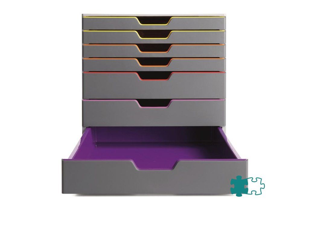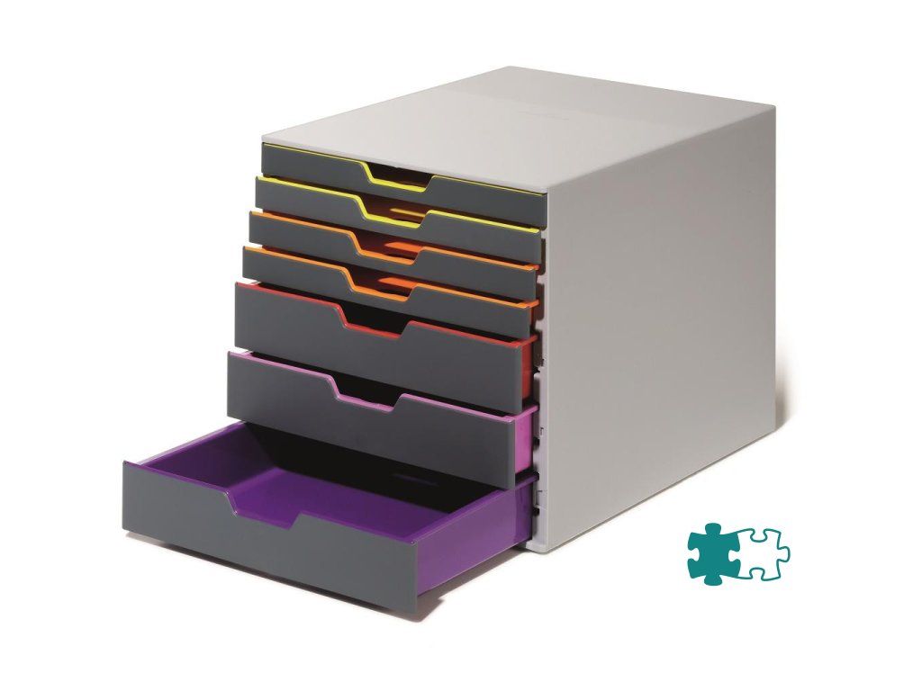 Boxy so 7 zásuvkami s vnútrami dúhových farieb dodajú kancelárii nádych elegancie. Pri ich zatvorení farebné línie iba jemne vystupujú z elegantnej sivej farby, pri otvorení sú žiarivé farby dúhy potešením pre oči. Dodávané s priehľadnými plastovými indexami na označenie obsahu. Boxy sú stohovateľné, zásuvky zabezpečené proti vypadnutiu. Materiál najkvalitnejší ABS plast, tichý a ľahký posun zásuviek, spodná strana s protišmykovou ochranou. Víťaz Product design award 2013. Rozmery (š × v × h) 292 × 280 × 356 mm.Dodatočné parametre