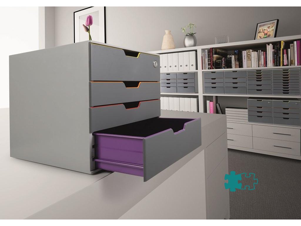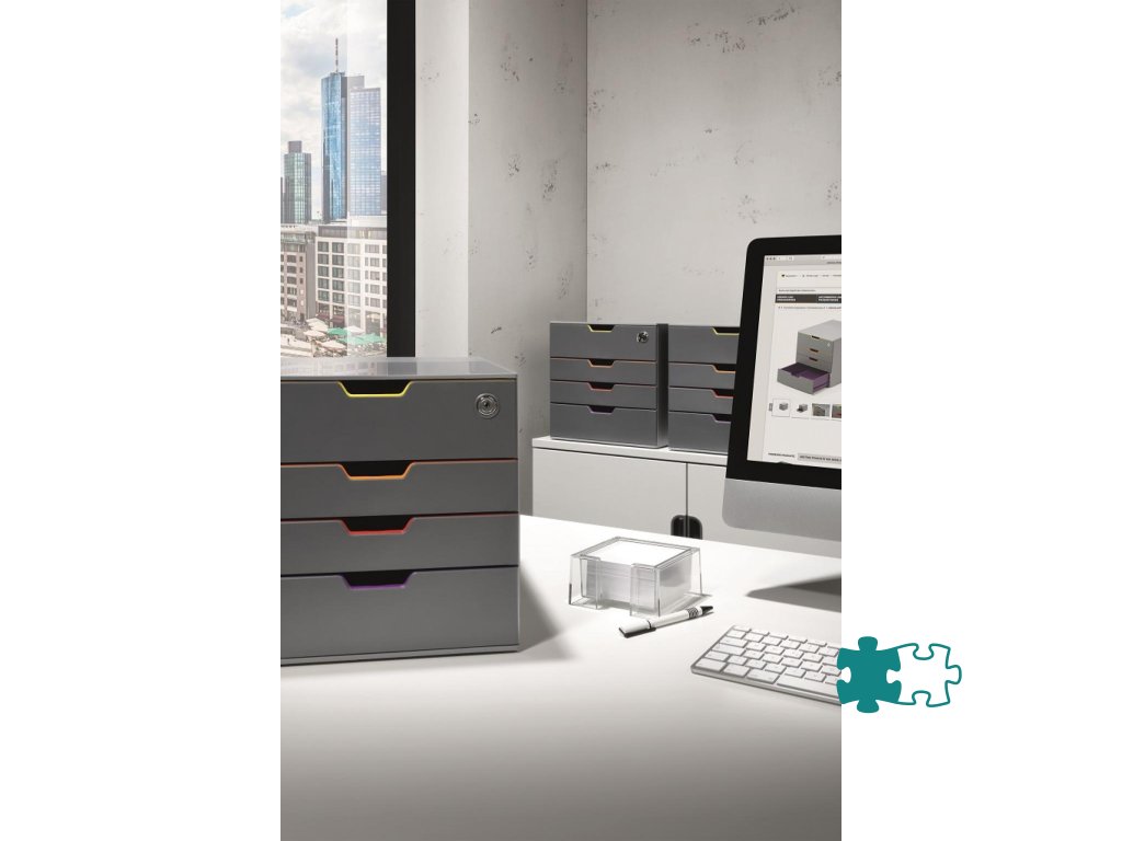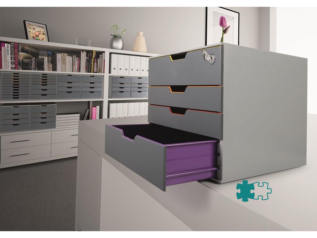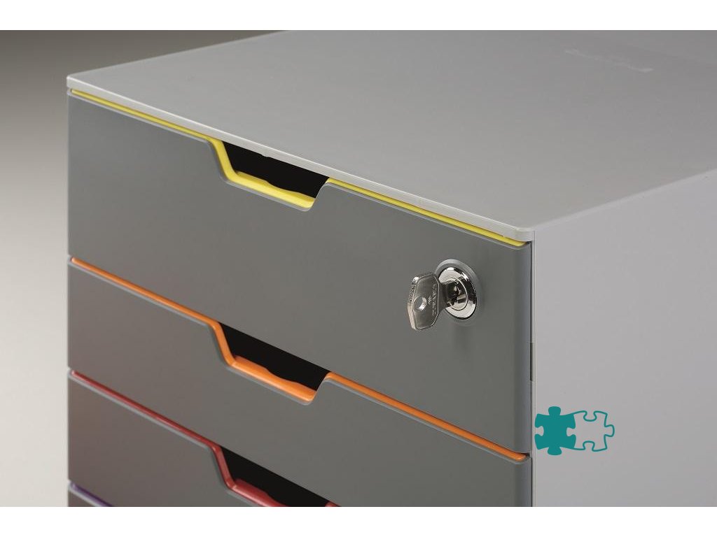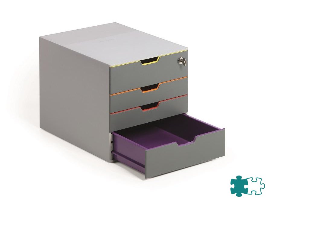 Box s cylindrickou vložkou, dodávaný s 2 kľúčami. 4 zatvorené zásuvky, vrchná a spodná zásuvka vo formáte XXL.Dodatočné parametre