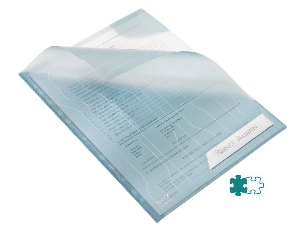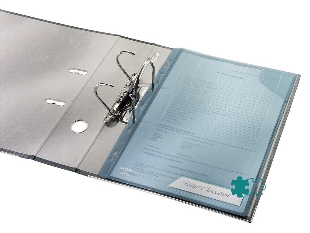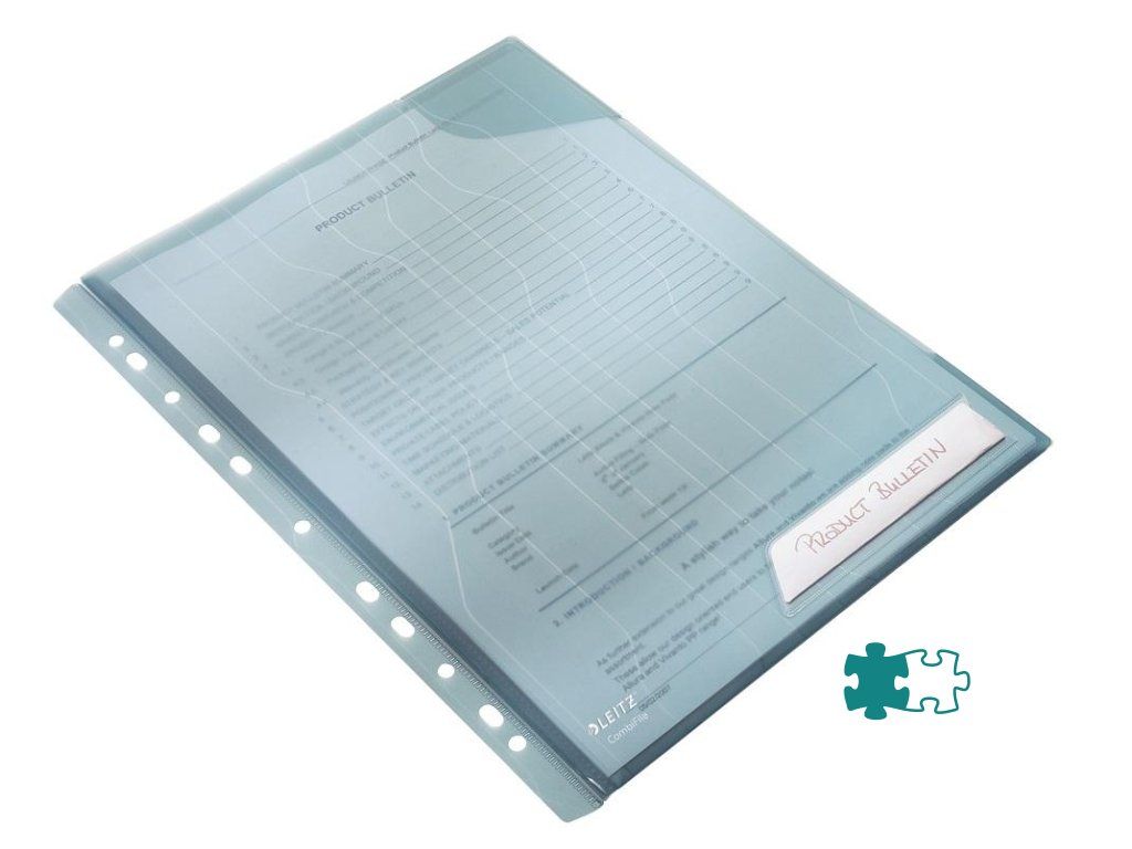 Unikátny závesný obal typu `L`, ktorý kombinuje vlastnosti euroobalov a obalov vďaka patentovanej skrývateľnej multiperforácii do špeciálneho puzdra. Obsahuje rohovú chlopňu, ktorá chráni vložený dokument a vrecko na popis obsahu s vymeniteľným štítkom. Vyrobený z kvalitného priehľadného PP s embosovaným vzorom. Hrúbka 200 um. Kapacita 40 listov papiera formátu A4. Balenie 5 ks.Farba: modrá