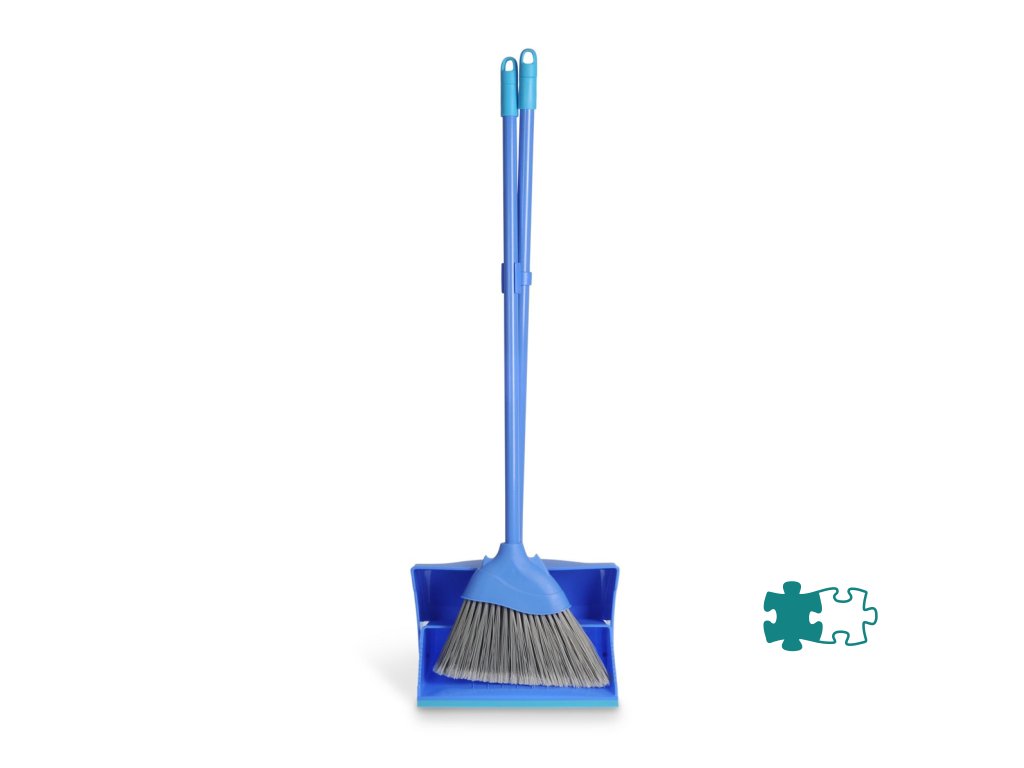 Dlhá rukoväť na metle aj na lopatke vám zaručí pohodlné zametanie bez zbytočného ohýbania. Lopatka je zakončená gumovým okrajom, ktorý perfektne prilieha k podlahe a na zemi už nezostane ani smietko. Súprava je vyrobená z plastu v modrej farbe, kovová tyč je 75 cm dlhá a vďaka klipu je možné pripevniť lopatku k metličke, aby ste ich našli vždy pri sebe.