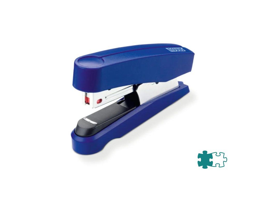 Malá ľahká zošívačka so systémom plochého zošívania (Flat-Clinch), umožňujúca superľahké zošívanie. Plastový zásobník, jednoduché vedenie spiniek. Kapacita náplne 100 spiniek veľkosti 10. Hĺbka zošívania 3,8 cm. Hmotnosť 115 g. Záruka 10 rokov.Farba: modrá