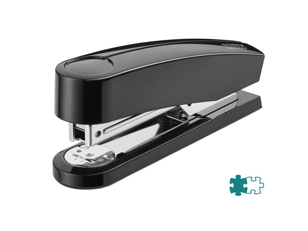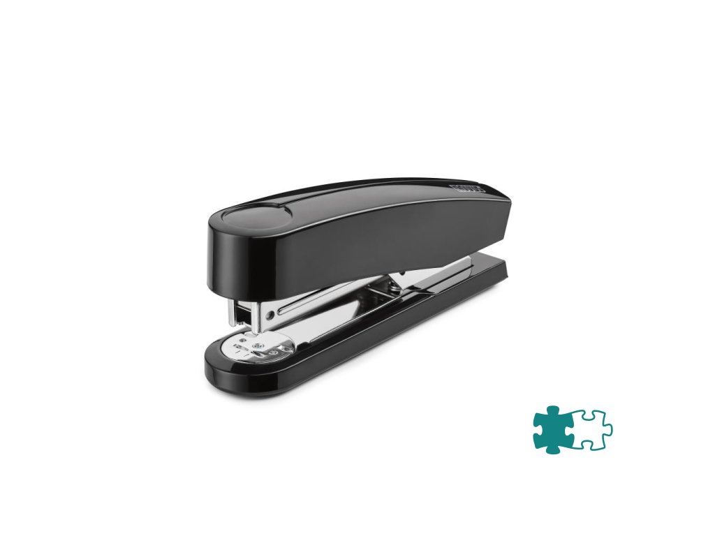 Ľahká zošívačka s kovovým zásobníkom a jednoduchým vedením spiniek. Kapacita náplne 100 spiniek 24/-6 alebo 150 spiniek 26/-6. Hĺbka zošívania 6,5 cm. Hmotnosť 175 g. Záruka 10 rokov.Farba: čierna