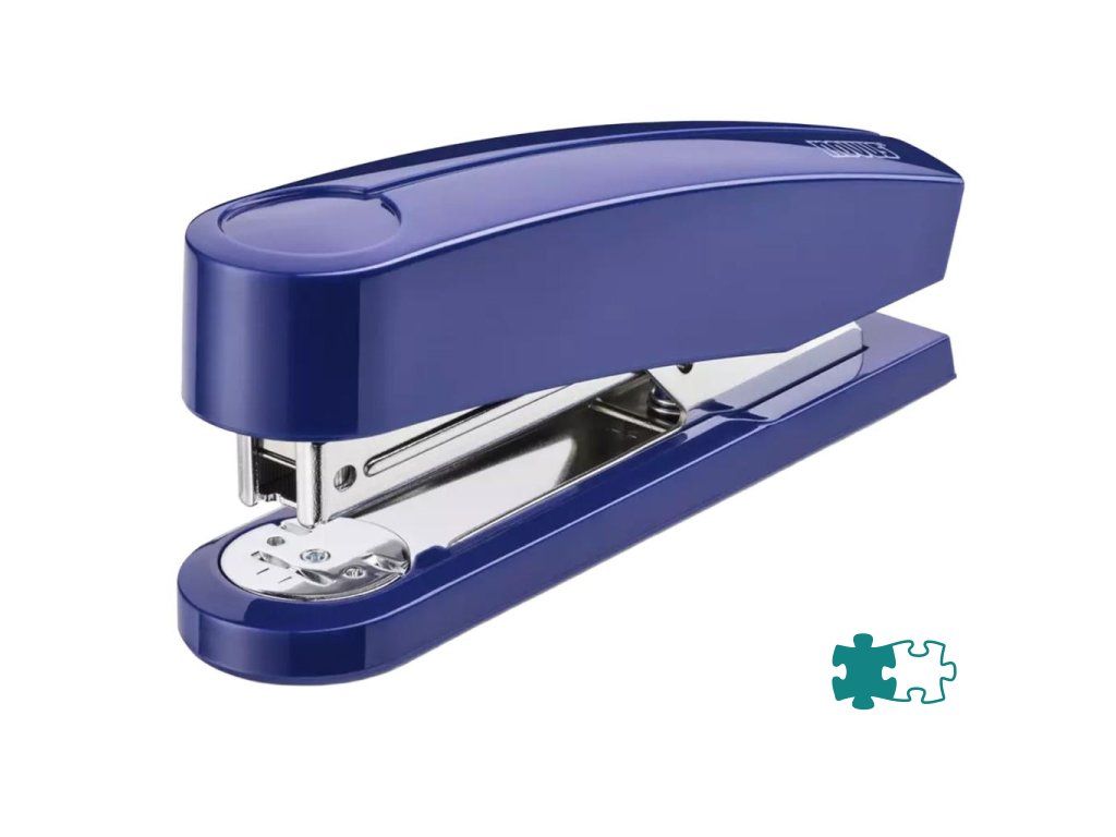 Ľahká zošívačka určená pre malé kancelárie s kovovým zásobníkom a jednoduchým vedením spiniek. Kapacita náplne 100 spiniek 24/ 6 alebo 150 spiniek 26/ 6. Hĺbka zošívania 6,5 cm. Hmotnosť: 175 g. Záruka 5 rokov.Farba: modrá