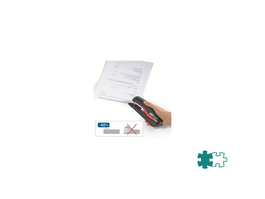 Revolučná zošívačka kompaktných rozmerov a s klasickou kapacitou zásobníka, vybavená patentovanou technológiou Omnipress®, ktorá umožňuje s minimom sily stlačiť zošívačku po celom jej tele a ľahko tak zošiť dokument na stole i v ruke. To všetko v kombinácii s technológiou super plochého zošívania SuperFlatClinch prinášajúcou 40 % úsporu miesta pri zakladaní takto zošitých dokumentov. Farba čierna/červená.Dodatočné parametre
