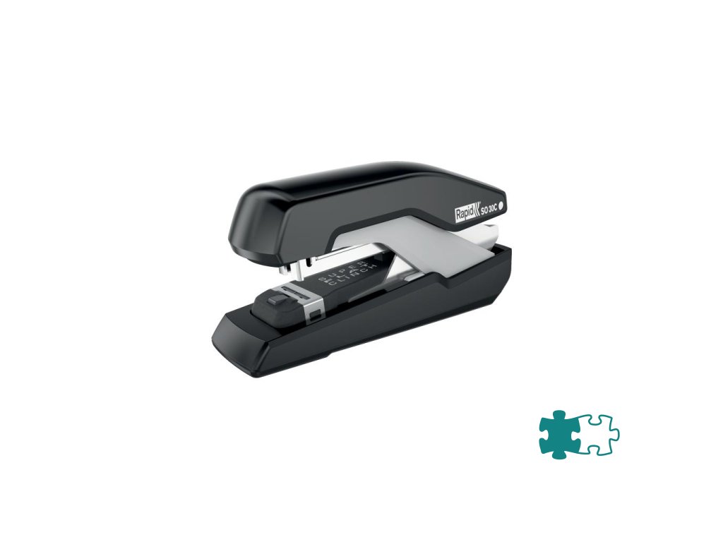 Revolučná kompaktná zošívačka, vybavená patentovanou technológiou Omnipress®, možno stlačiť kdekoľvek, aby ste ušetrili všetku námahu pri zošívaní, či už sa používa na stole alebo v ruke. Jedinečná technológia Super Flat Clinch znižuje stoh papiera o 40 %.Zošíva až 30 listov papiera (80 g/m2)