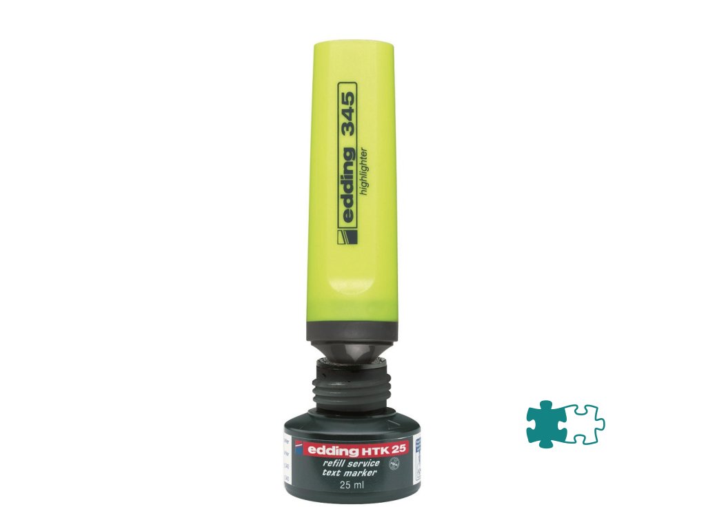 Popisovač so zrezaným hrotom so šírkou stopy 2 - 5 mm. Pre zvýraznenie textových pasáží, výstupov z atramentových tlačiarní, poznámok a pod. Vodovzdorný pigmentový atrament so silne svietivými a intenzívnymi farbami. Vhodný pre InkJet - pri zvýrazňovaní textov tlačených na atramentových tlačiarňach sa atrament nerozpíja. Dopĺňateľný atramentom HTK 25. Väčšie balenie 10 ks.Farba: žltá